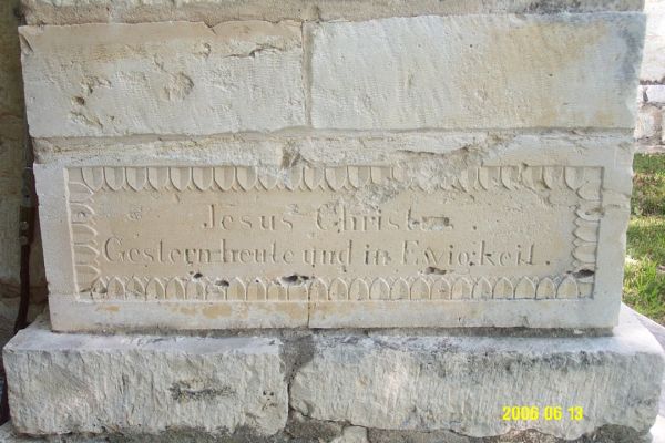 Now viewing: Comal County Genealogy Society » Photo Album » Field Trips » 2006 June: Historic Churches of New Braunfels Tour » First Protestant Church cornerstone