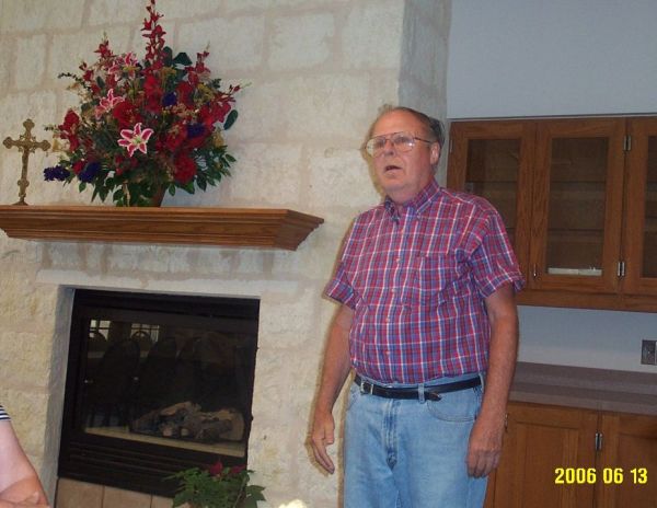 Now viewing: Comal County Genealogy Society » Photo Album » Field Trips » 2006 June: Historic Churches of New Braunfels Tour » Everett Fey, Sts. Peter & Paul Catholic Church tour guide