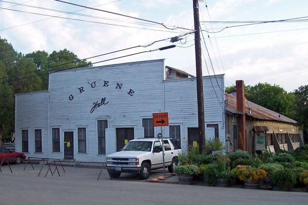 Built in 1878 as a saloon and social hall for area cotton farmers, this is believed to be one of the oldest dance halls in Texas. Christian Herry (1854-1917) built the hall under the direction of town developer Henry D. Gruene, for whom many of the farmers worked. The center of the community's social life for over a century, the large one-story structure features a "false front" entry with asymmetrical window and door arrangements. [Recorded Texas Historic Landmark - 1988]