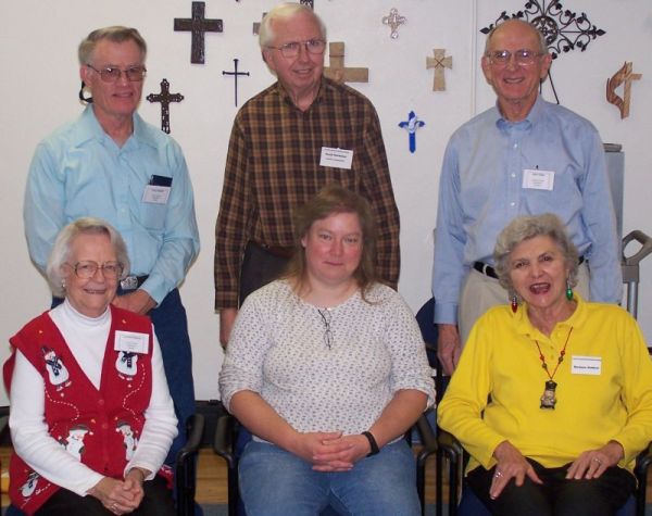 2007 CCGS Officers - [sitting] LaVerne Schwab Pearce (Genealogy), Connie Schneider Krause (President, Footsteps Editor), Marijane Fischer Stafford (Secretary) [standing] Terry Fischer (Treasurer), David Hierholzer (Membership), Alton Rahe (Past President, Publications) [not in picture] Mary Ann Lehman (Public Relations)