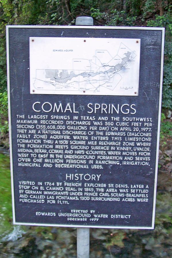 For more information on the Comal Springs, see the Comal Springs article at the Handbook of Texas Online.
