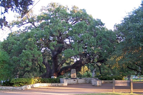This tree in Landa Park is called the Founder's Oak. Legend has it that founders of New Braunfels held their first council meeting under the tree in 1845. Core samples taken in 1985 concluded that it sprouted in the year 1700.