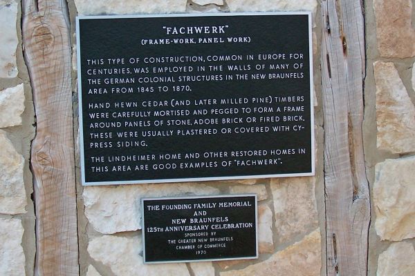 Now viewing: Comal County Genealogy Society » Photo Album » New Braunfels, Texas » Landa Park » New Braunfels Founding Families Fachwerk Memorial » The New Braunfels Founding Families Fachwerk Memorial - Fachwerk Plaque