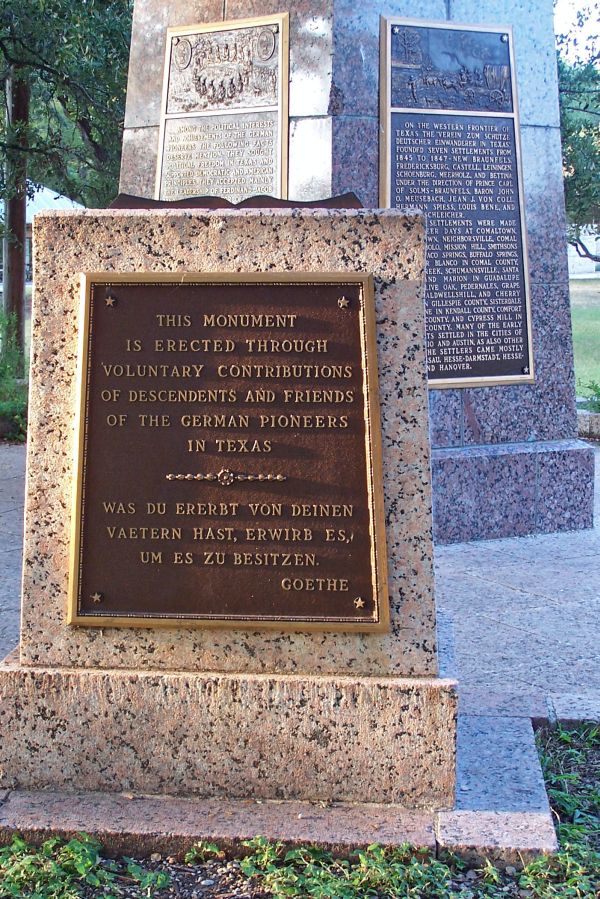Now viewing: Comal County Genealogy Society » Photo Album » New Braunfels, Texas » Landa Park » German Pioneers Monument » German Pioneers Monument