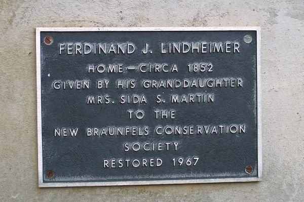 This was the home of Ferdinand Jacob Lindheimer (May 21, 1801 - December 2, 1879). He is known as the Father of Texas Botany, with over 20 species and one genus bearing his name. In 1852, Lindheimer was hired as an editor and helped found the German-language newspaper known as the Die Neu-Braunfelser Zeitung.